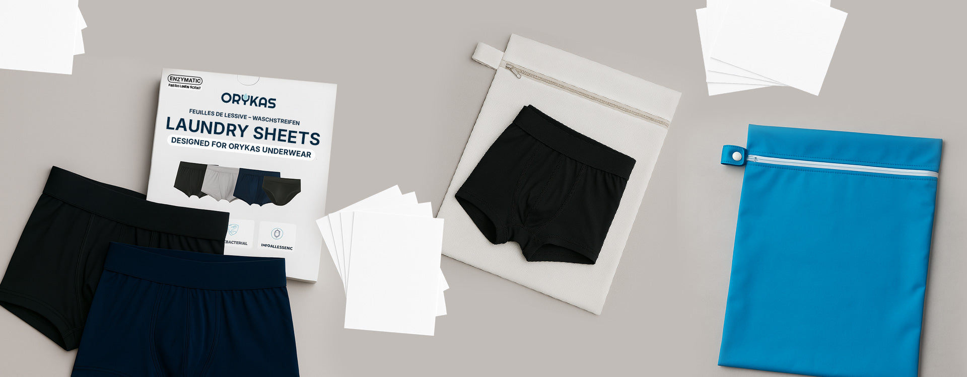Alles, was Sie zur Pflege Ihrer ultra-absorbierenden Unterwäsche benötigen – von Wäschenetzen über wasserdichte Beutel bis hin zu antibakteriellen Waschlappen. Praktisch, diskret und umweltfreundlich.